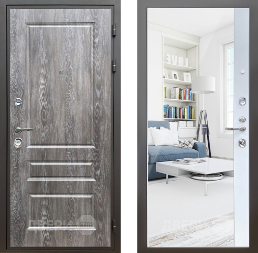 Входная Дверь Шелтер (SHELTER) Комфорт Дуб шале серебро 14 с зеркалом Белый матовый 860x2050 мм